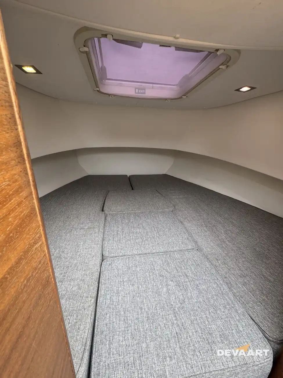 Below deck are a cabin with double bed and toilet.