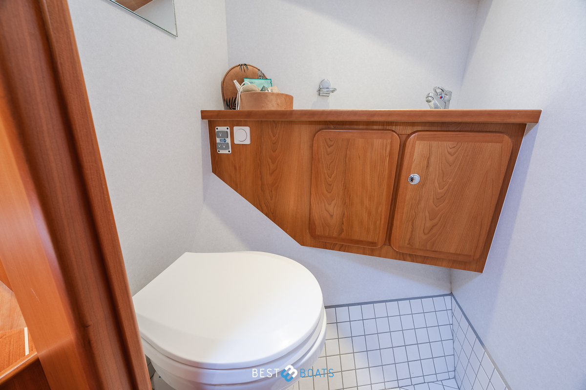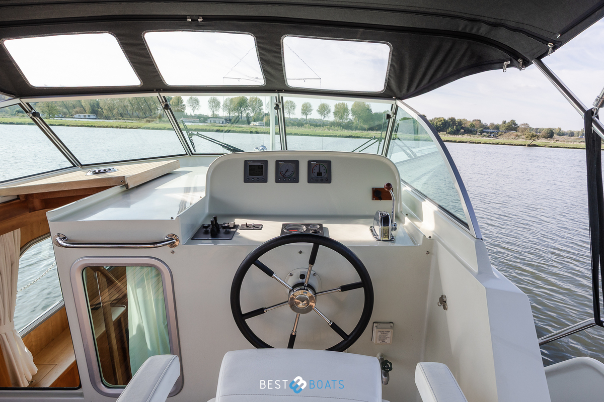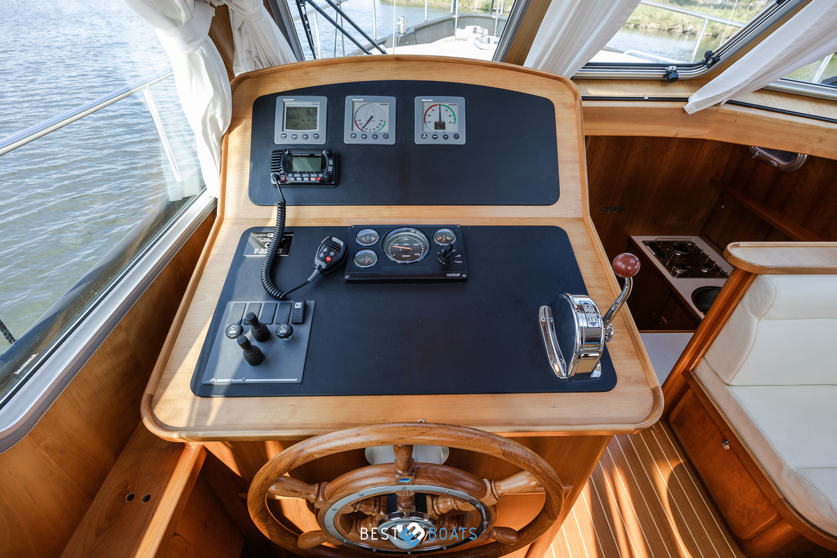 Het comfort aan boord wordt verder verhoogd door een uitgebreid verwarmingssysteem met warmwatercirculatie en radiatoren door het hele schip, evenals een warmwaterboiler die werkt op zowel walstroom als motorwarmte. Ook qua vaareigenschappen laat deze Linssen niets te wensen over. De hydraulische binnen- en buitenbesturing maakt het varen en manoeuvreren eenvoudig, terwijl de elektrische boeg- en hekschroef zorgen voor moeiteloze controle in elke haven. De doorvaarthoogte van slechts 2,90 meter (bij neergeklapte stuurstand) maakt het schip bovendien geschikt voor een groot aantal vaargebieden in binnen- en buitenland.