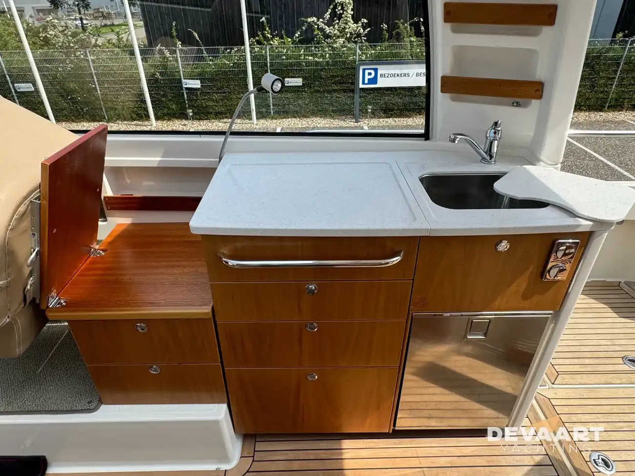 Nimbus 27 Nova S HT with 260 hp Volvo Penta diesel engine, hardtop with opening canvas roof (manual, 2025) and a light gray hull color (foil). This Nimbus 27 Nova S HT has an extensive specification including a teak deck (excl. port side deck), electric bow anchor windlass, a stern anchor windlass, heating, electric toilet, fill-in cushion to create a sun bed, Simrad plotter / GPS, VHF radio, horn and electric searchlight. This sporty Nimbus 27 Nova S HT offers a practical layout with plenty of seating and space to move around on its approximately 8 m. The aft deck is on the same level as the cockpit and has a fixed bench. The cockpit accommodates the steering position, co-sailing bench, saloon setup / sun bed and galley and has a large canvas roof, allowing you to use the boat both open and closed. The cockpit can be further closed off with a drop-down cover. Below deck there is sleeping accommodation for 3 people and a bathroom with toilet/shower. With its wide starboard side deck you can move easily on deck. At the bathing platform there is also an outdoor shower with hot/cold water. In short, this Nimbus 27 Nova S HT has everything on board for an enjoyable boating season. Part-exchange considered. Contact us at +or visit our website for more information on this motor yacht. De Vaart Yachting are dealers of Nimbus Boats, Sealine Yachts, Paragon Yachts and Aquador Boats. In addition, we are specialists in pre-owned Scandinavian motor yachts and internationally active yacht brokers. In our showrooms you will find a large number of new and pre-owned motor yachts for sale. Visit for our complete boat listing.