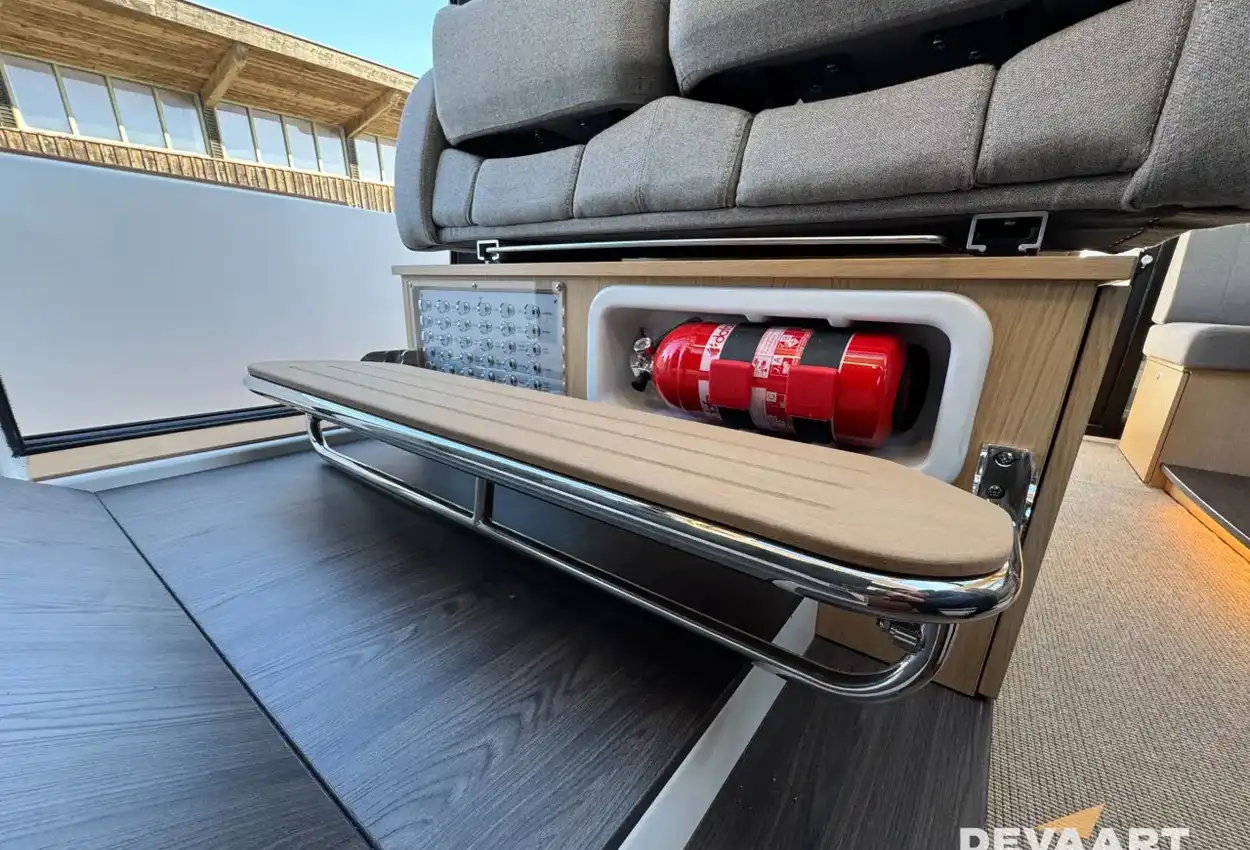 HPL floors in hall and cabins (no carpet)