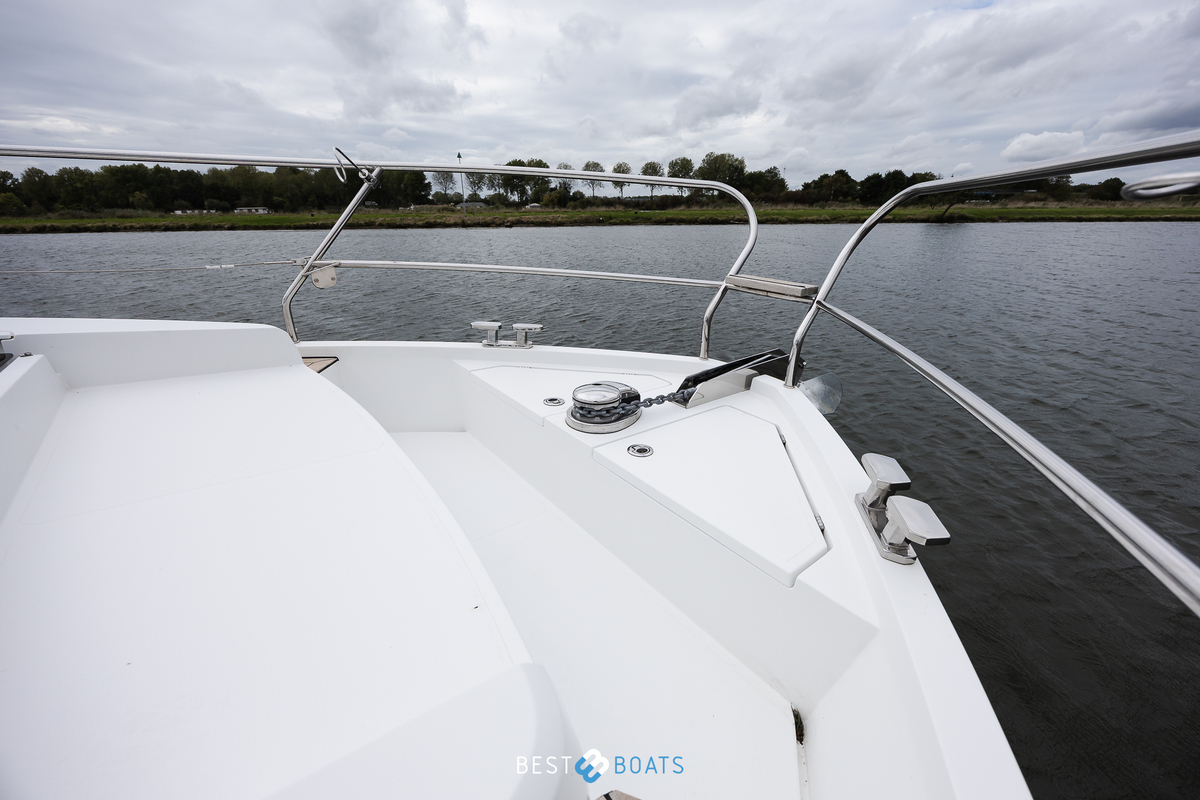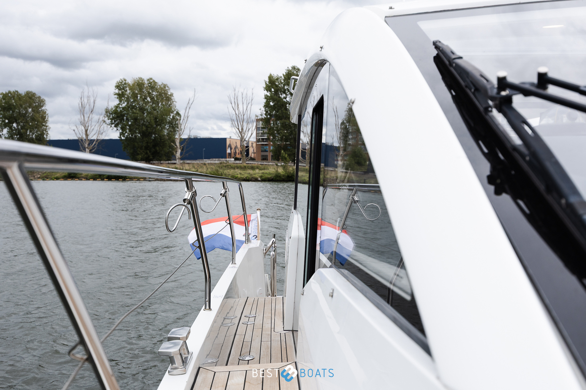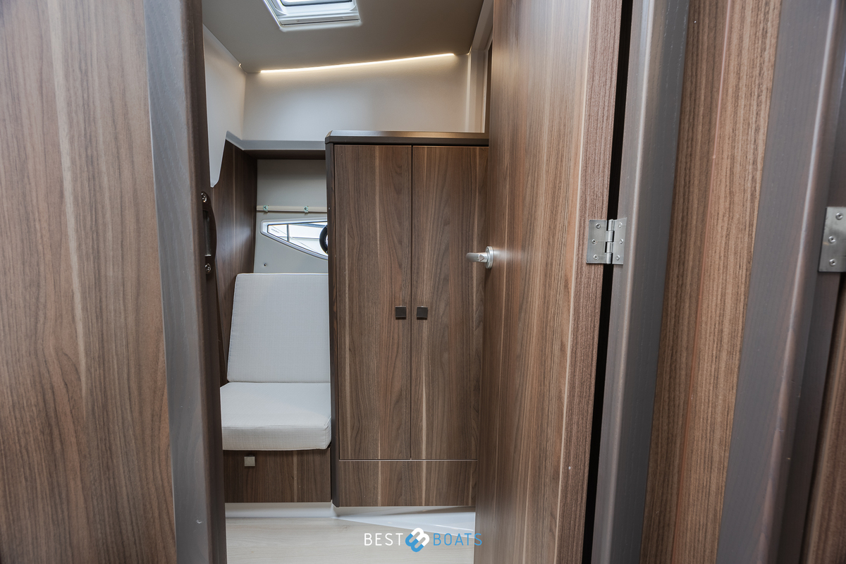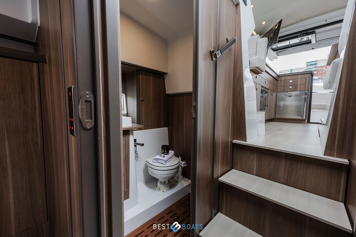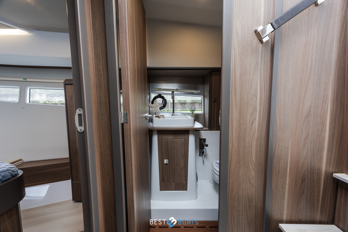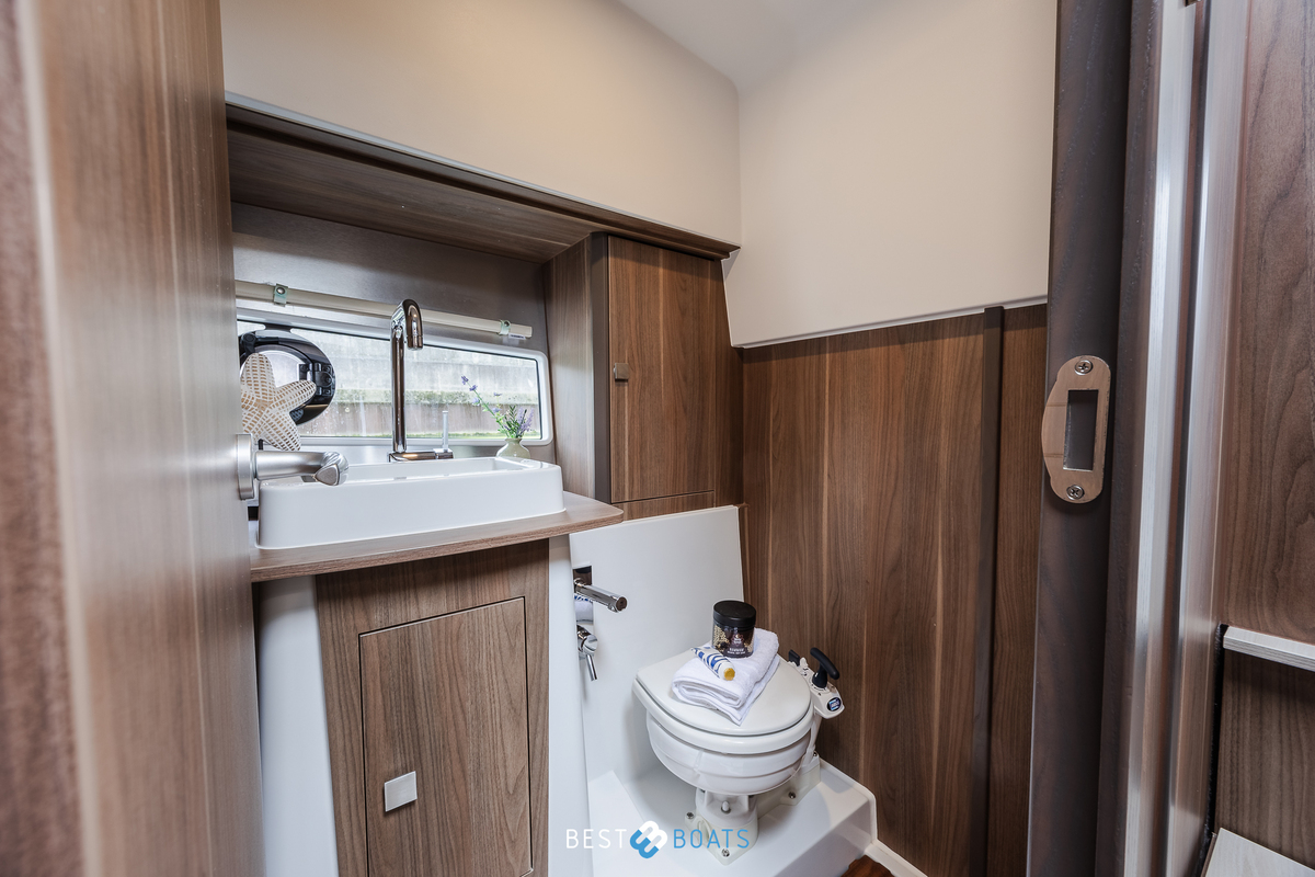 Deze Sealine C330 uit 2016 combineert sportief vaarplezier met comfortabel cruisen. Het motorjacht is ontworpen door de Britse scheepsarchitect Bill Dixon en gebouwd door HanseYachts AG, en biedt een modern, licht interieur met een open salon, keuken en cockpit die vloeiend in elkaar overlopen. Voorin bevindt zich de ruime eigenaarshut met tweepersoonsbed en achterin de gastenhut, eveneens met een comfortabel tweepersoonsbed.