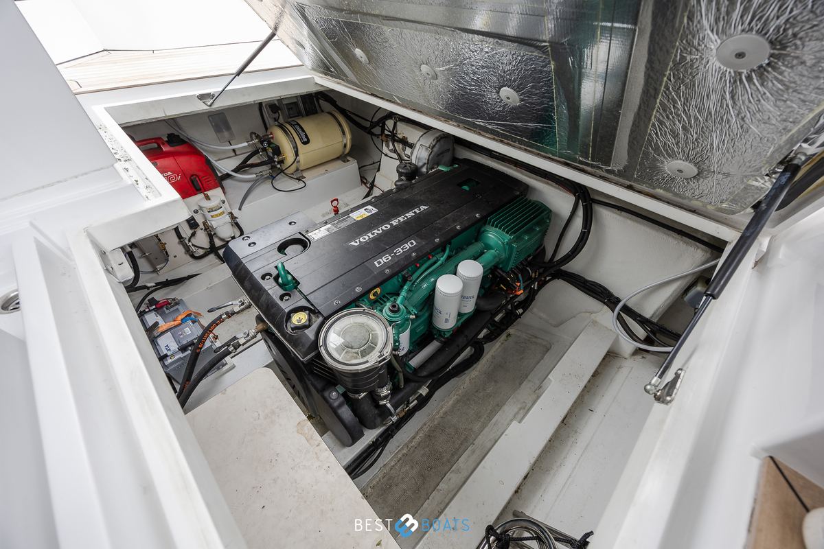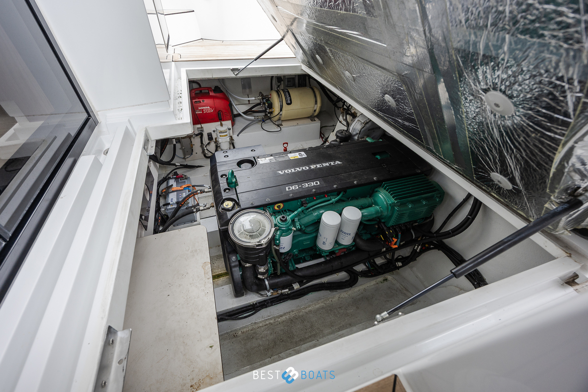 De boot wordt aangedreven door een Volvo Penta D6-330 pk dieselmotor en beschikt over hydraulische besturing en een boegschroef, waardoor hij zeer wendbaar en prettig te manoeuvreren is. De V-vormige romp zorgt voor een stabiele en soepele vaart, zelfs op ruwer water. Voor comfort aan boord is voorzien in warm water, verwarming, een buitendouche en een volledig geïntegreerd zwemplatform. De Sealine C330 is uitgerust met moderne navigatie- en communicatiesystemen en heeft een stijlvol teakdek en een complete buitenkuip met comfortabele kussens.