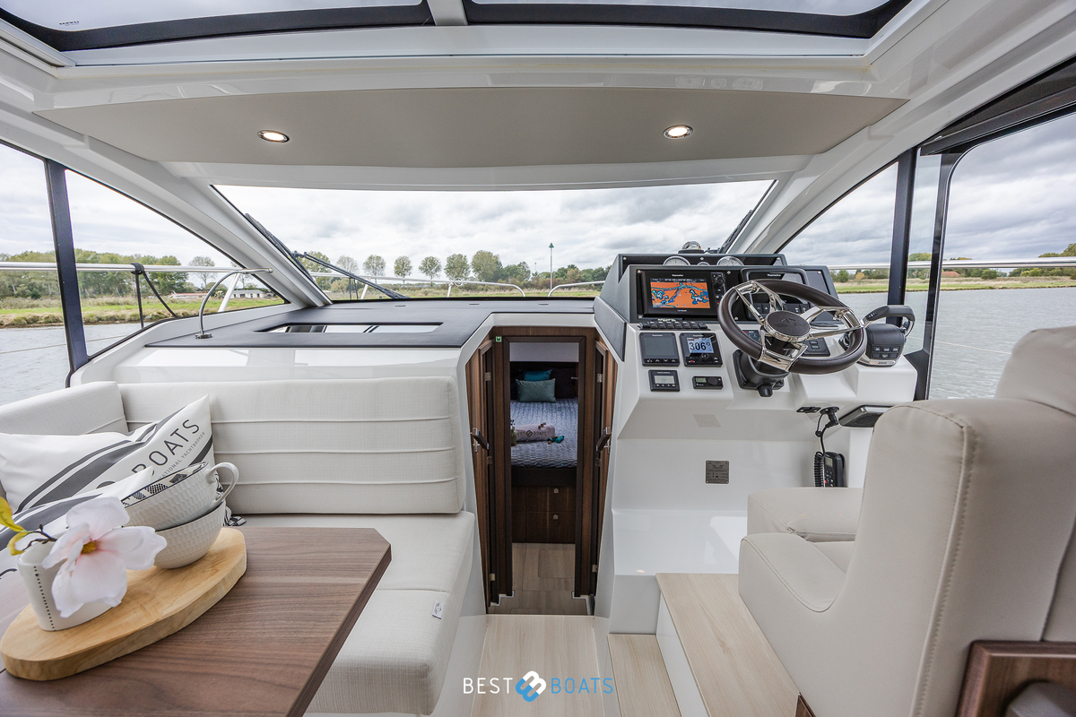 Deze Sealine C330 biedt zowel prestaties als luxe en is direct beschikbaar in de verkoophaven van Roermond.