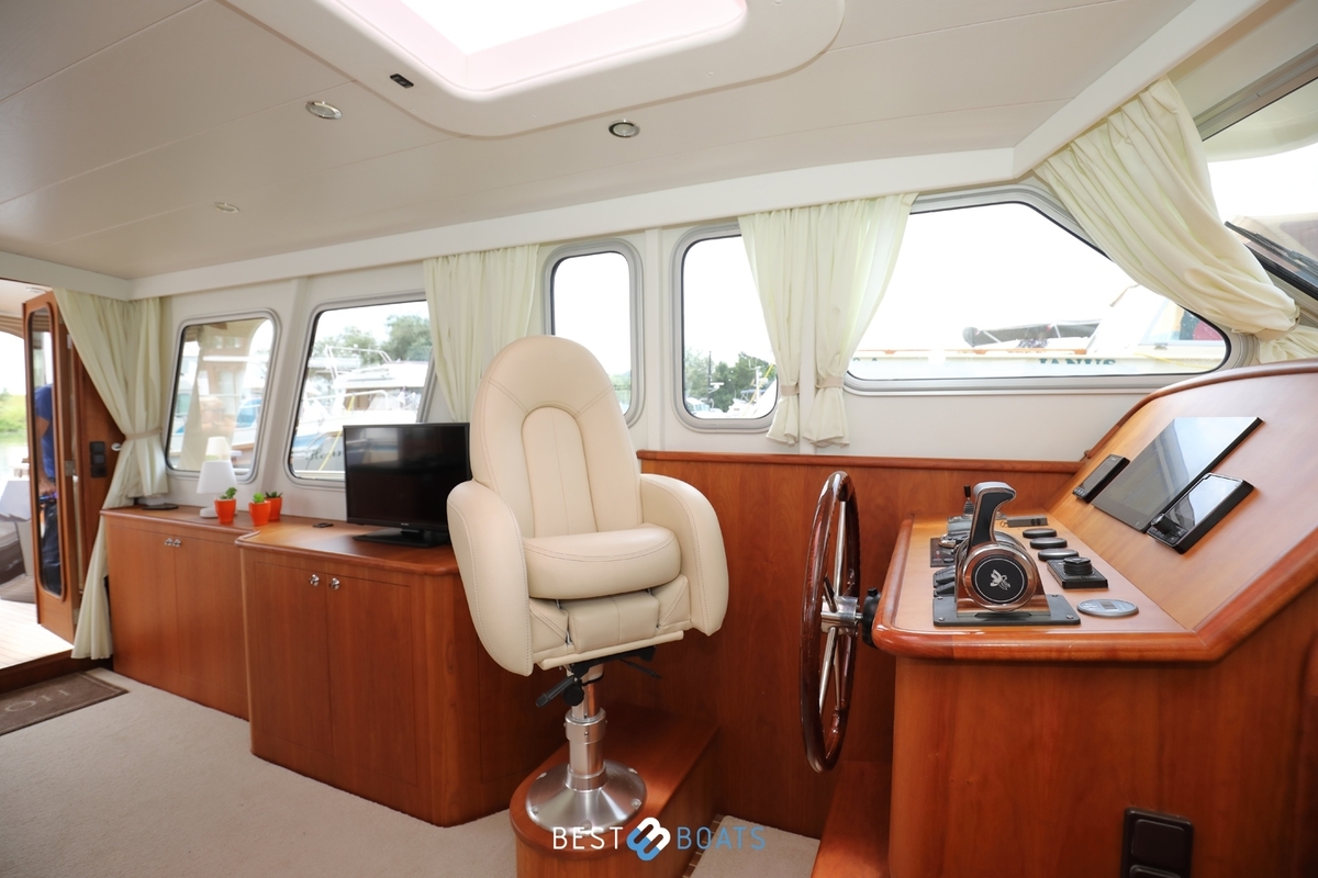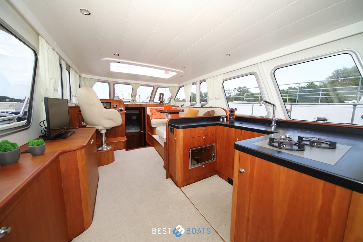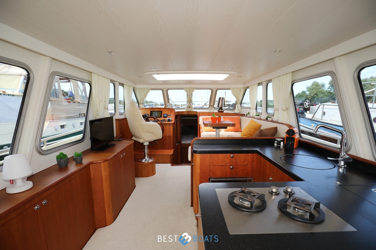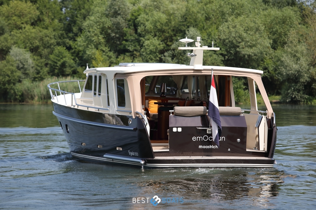 Prachtig Tryvia 1300 OK jacht waarbij het interieur van binnen prachtig afgestemd is met het interieur buiten. Het jacht is een mooie verschijning vanwege de bruintint van het jacht en de volledig nieuwe stoffering in de bijpassende tinten. Het ruime achterdek kan eenvoudig bij de rest van het jacht worden betrokken door het openen van de deuren. Door een minimale kruiphoogte is dit jacht ideaal geschikt voor varen op de binnenwateren. Met de aanwezigheid van de electrische boeg- en hekschroef met afstandsbediening en de 1x 156 PK Steyr motor is dit jacht zeer soepel te besturen. Doordat alle entertainment, zowel binnen als buiten, zich op 1 verdieping bevindt, hoeft u niets te missen. Bent u op zoek naar een open kuip jacht? Dan is deze Tryvia zeker de moeite waard om te bezichtigen!