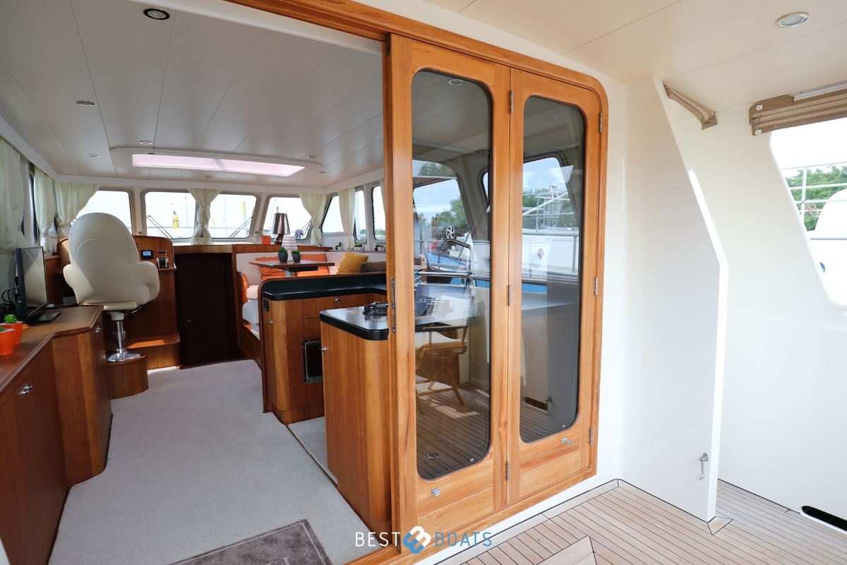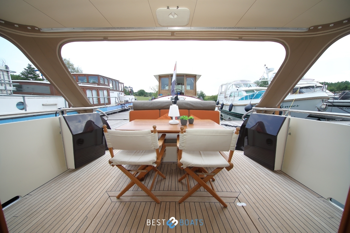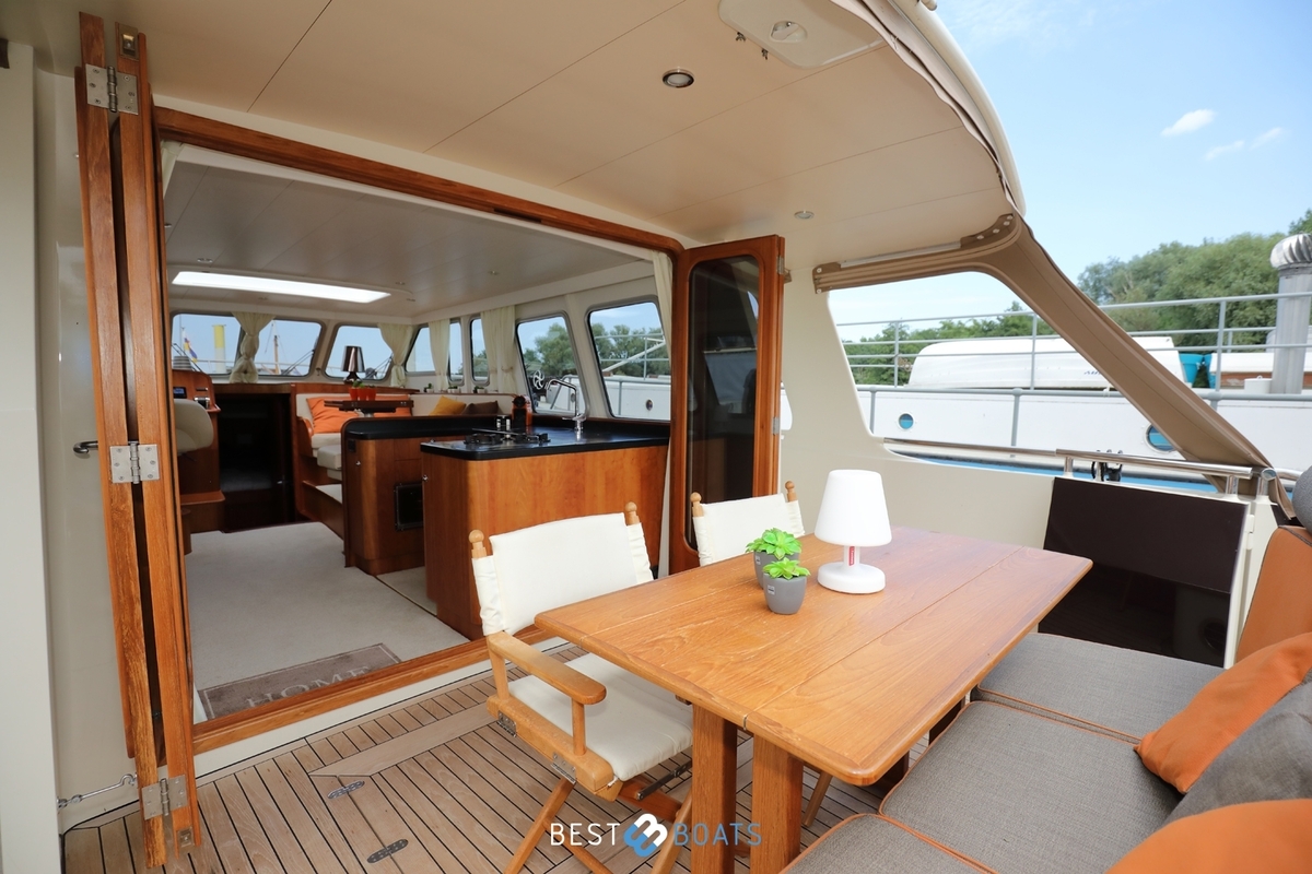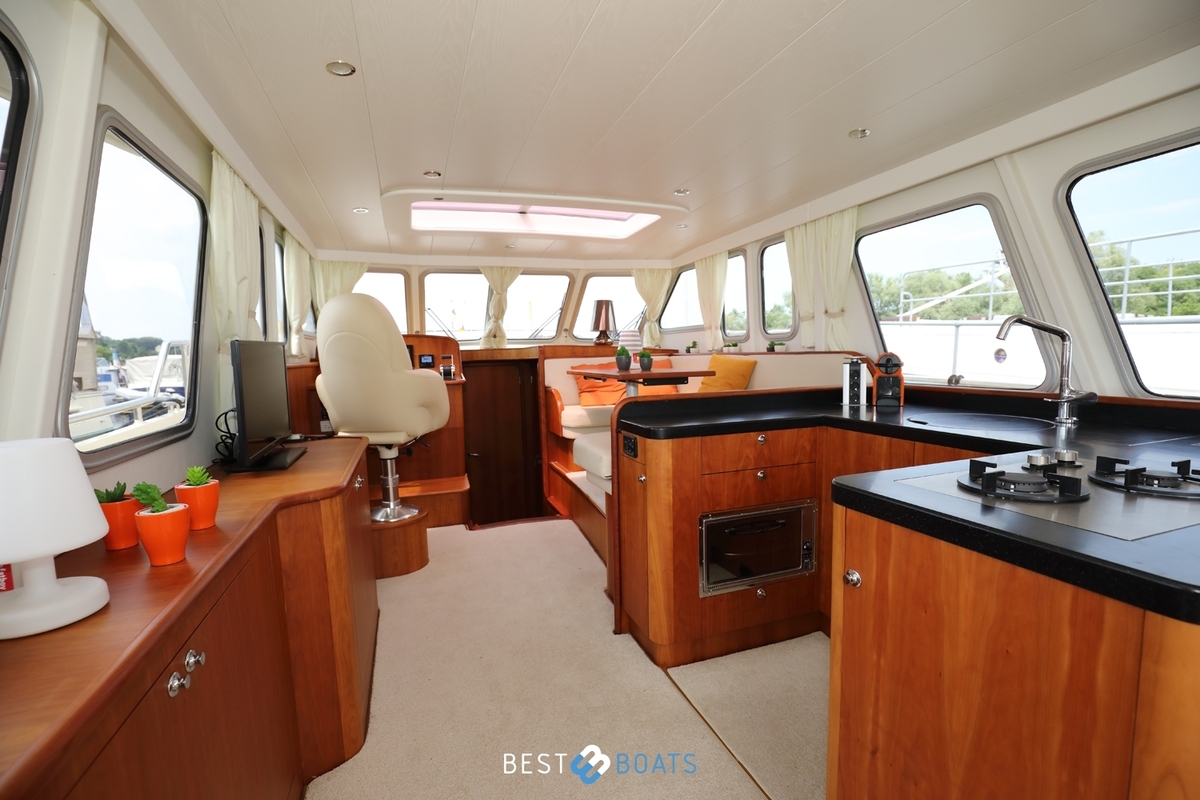 Prachtig Tryvia 1300 OK jacht waarbij het interieur van binnen prachtig afgestemd is met het interieur buiten. Het jacht is een mooie verschijning vanwege de bruintint van het jacht en de volledig nieuwe stoffering in de bijpassende tinten. Het ruime achterdek kan eenvoudig bij de rest van het jacht worden betrokken door het openen van de deuren. Door een minimale kruiphoogte is dit jacht ideaal geschikt voor varen op de binnenwateren. Met de aanwezigheid van de electrische boeg- en hekschroef met afstandsbediening en de 1x 156 PK Steyr motor is dit jacht zeer soepel te besturen. Doordat alle entertainment, zowel binnen als buiten, zich op 1 verdieping bevindt, hoeft u niets te missen. Bent u op zoek naar een open kuip jacht? Dan is deze Tryvia zeker de moeite waard om te bezichtigen!