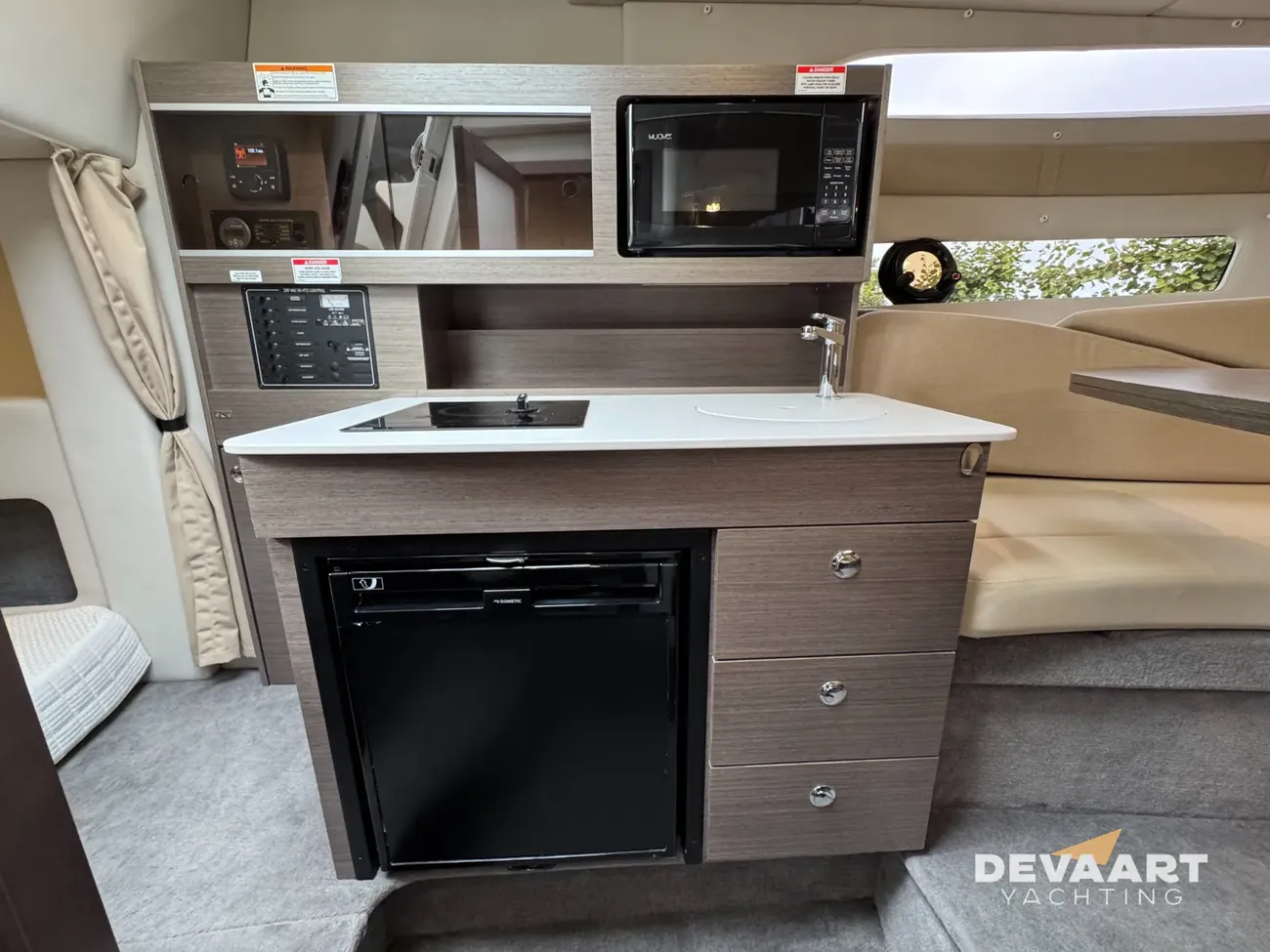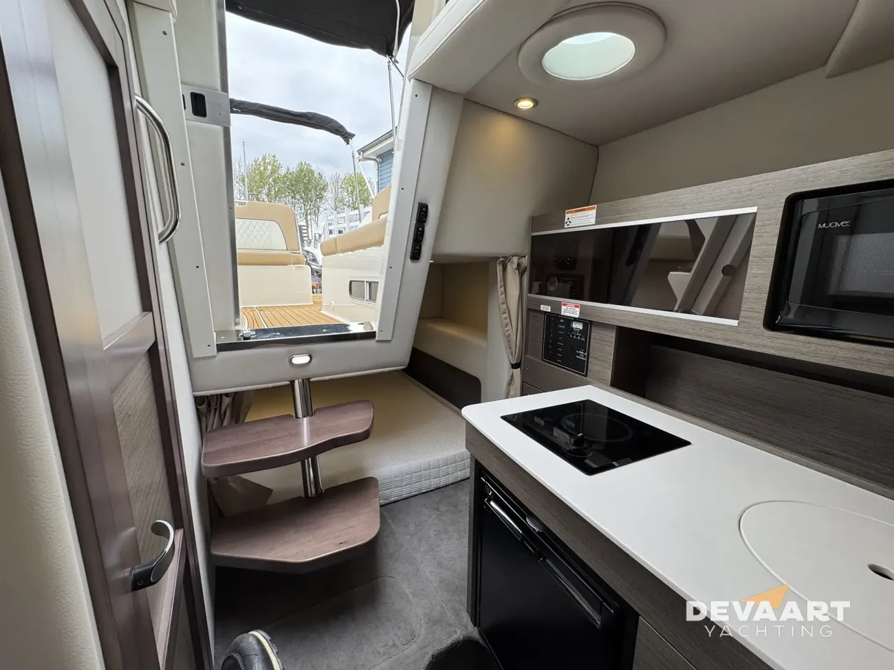 Sporty Bayliner Ciera 8 with a Mercruiser 350 hp engine. Comfort, style, and performance come together in this luxurious weekend cruiser. This Bayliner Ciera 8 is in very good condition and features extensive equipment including a bow thruster, electric anchor winch, inverter, foredeck sunbed, horn, various Garmin equipment, 4 fender baskets, Sea Deck plastic deck cockpit, + bathing platform. Step aboard and experience the well-thought-out layout. The spacious cockpit with a luxurious teak table and comfortable benches offers plenty of space for socializing and relaxing. The backrest of the cockpit settee folds down to form a sunbed, there are several storage compartments, and an adjustable sunbed is located on the foredeck. The forward cabin features a spacious dinette that can be converted into a double bed. There's also a aft bed with berths for two adults, a bathroom with a toilet/shower, and a galley equipped with an electric stove, sink, refrigerator, and microwave. The Bayliner Ciera 8 is spacious enough to comfortably accommodate friends or family on board. The Bayliner Ciera 8 offers ample space, a high-quality finish, and optimal boating pleasure—perfect for day trips, weekend getaways, or extended enjoyment on the water. Part-exchange considered. Contact us at +or visit our website for more information on this motor yacht. De Vaart Yachting are dealers of Nimbus Boats, Sealine Yachts, Paragon Yachts and Aquador Boats. In addition, we are specialists in pre-owned Scandinavian motor yachts and internationally active yacht brokers. In our showrooms you will find a large number of new and pre-owned motor yachts for sale. Visit for our complete boat listing.