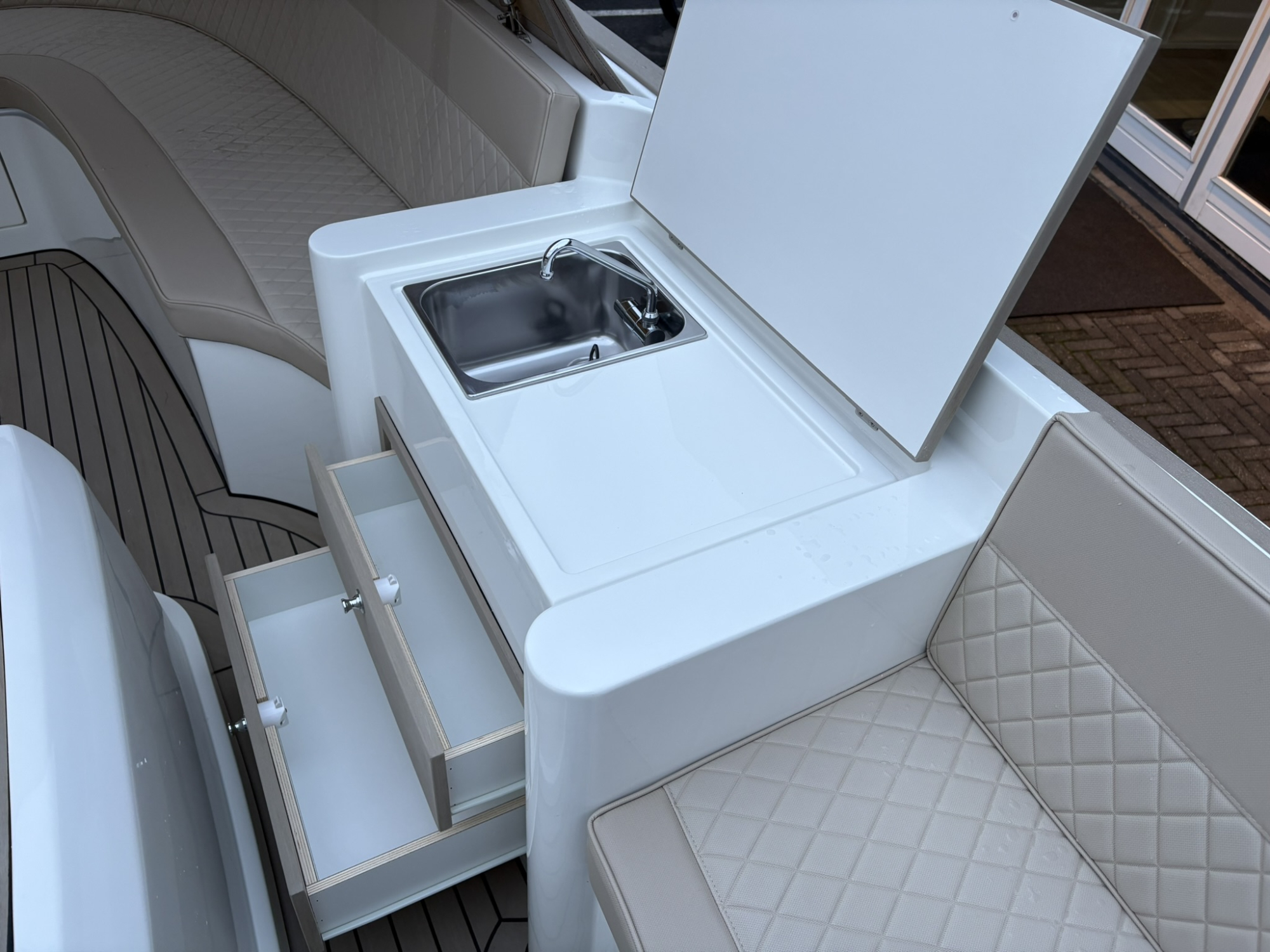 Deze Antaris Sixty7 met Vetus 42 pk in de kleurstelling Pure White met Papyrus buiskap is een chique maar toch sportieve samenstelling.