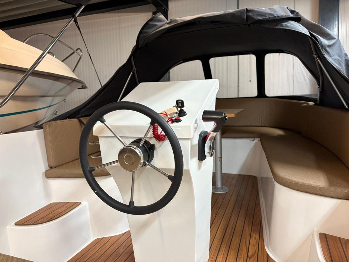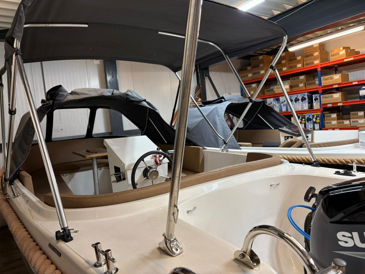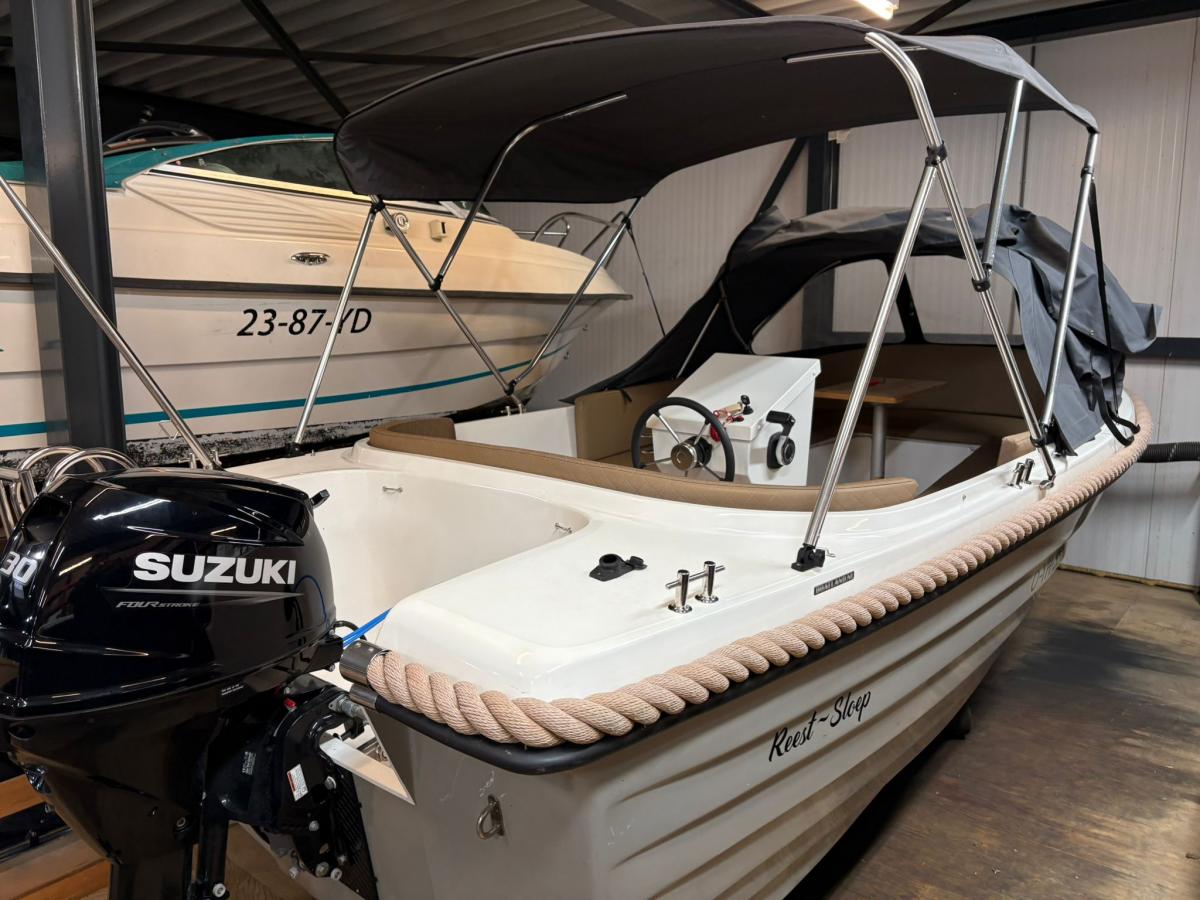 Reest sloep 520Deze schitterende boot is voorzien van:Suzuki DF30 ATL Luxe gashendelBuiskap met afdekzeilLuxe silverguard bekledingUitneembaar zonnedek in de puntAnkerlichtUSB en 12V plug op het dashboardElektrische startBilgepomp6 kikkers rondom de bootRVS kielstripHPL teakvloerKabelaringVolledig vaarklaar geleverd met Fenders, lijnen en 12 liter brandstofZonnedekZwemtrap RVSU kunt bij dit aanbod gebruikmaken van de 50/50 Deal:U betaald 50% bij de koop en 50% bij de levering op een gewenst moment in 2026 in de tussentijd gaat de boot onze winterstalling in op onze kosten.Voor meer informatie en vragen kunt contact opnemen met: Boatservice Dannijs B.V. / Boatland.nl Setheweg 18 7942 LB Meppel Telefoon: +31 (0)522 240511Mobiel/ Whatsapp: +31 (0)6 21923271
