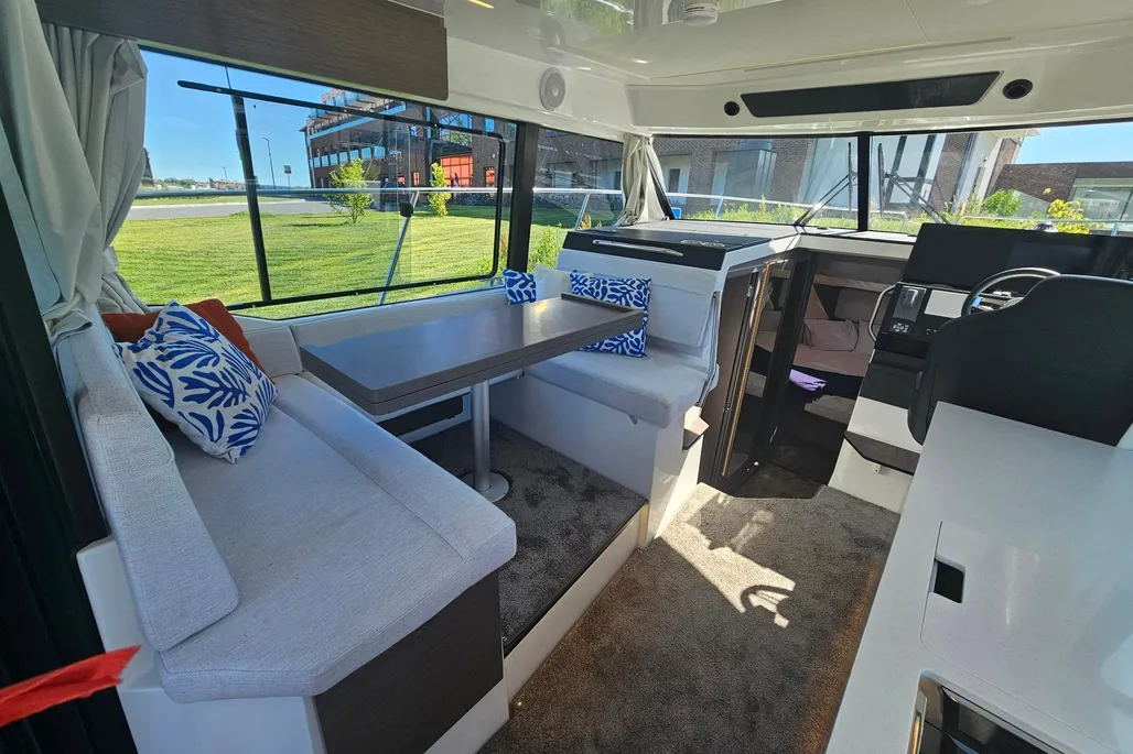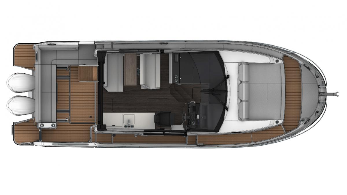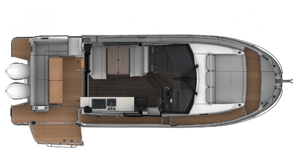 MERRY FISHER 1095 FLY S2: weer een stap vooruit!Jeanneau introduceert opnieuw het concept van zeilen aan boord van een 10 meter lange buitenboordmotorboot, nu met een flybridge-versie!De Merry Fisher 1095 Fly, al uniek in zijn categorie met een buitenboordmotor en drie kajuiten, loopt nu voorop en is nu ook voorzien van een flybridge.Zeilen was nog nooit zo leuk!De Merry Fisher 1095 FLY S2 beschikt over alle kwaliteiten van de Merry Fisher 1095 S2: ruim interieur, een bank bij de stuurstand, een hoogwaardige romp, een modulaire kuip, een verzonken loopplank, veel opbergruimte en al het comfort van de Merry Fisher-lijn.FLYBRIDGE: een ware leefruimteDe flybridge beschikt over een zonnedek in de boeg en een neerklapbare bank voor de copiloot. De bank kan, afhankelijk van uw voorkeur, worden omgebouwd tot een ligstoel of een extra groot zonnedek! De flybridge biedt bovendien voldoende opbergruimte en biedt plaats aan een optionele biminitop.Met zijn unieke ontwerp biedt de Merry Fisher 1095 FLY moeiteloos de luxe van een langeafstandscruiser voor het hele gezin. De Jeanneau Merry Fisher 1095 Flybridge, biedt een gezonde dosis snelheids- en pleziersensaties. Deze nieuwe ruimte stelt u in staat om oversteekplaatsen te ervaren en op een geheel nieuwe manier te genieten van de spray, de snelheid en de horizon.Een extra leefruimte De sterke punten van de Merry Fisher 1095 blijven onveranderd: indrukwekkende binnenruimtes, drie tweepersoonshutten, een 360°-uitzicht over zee vanuit de stuurhut, comfort, een royale uitrusting en over de hele lijn een veilige leefruimte, met vlakke vloerdelen voor een vloeiende overgang van binnen naar buiten, wat zowel de bediening als de toegang vergemakkelijkt. Met de flybridge krijgt u eenvoudig extra leefruimte.